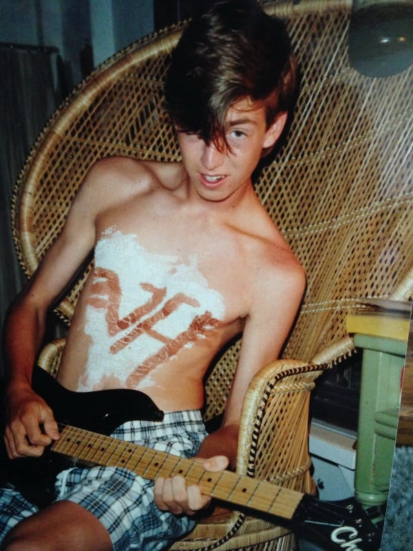This is me at age sixteen- a scrawny kid two months into my journey learning to play guitar, obsessed with Eddie Van Halen and inseparable from my instrument.
